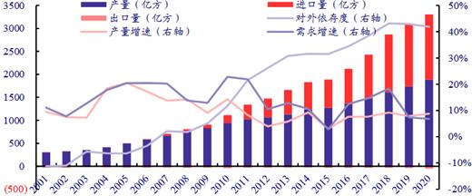 圖表:我國天然氣供需及對外依存度