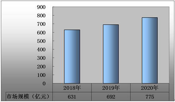 目前,我國已經成為全球最重要的安防視頻監控市場之一,也是全球最大的安防視頻監控產品制造地,2018年我國安防視頻監控市場631億元,2020年我國安防視頻監控市場約775億元,年均復合增長率預期為11%左右。