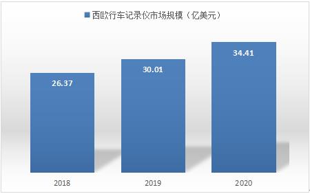 圖表:2018-2020年西歐區域行車記錄儀市場規模