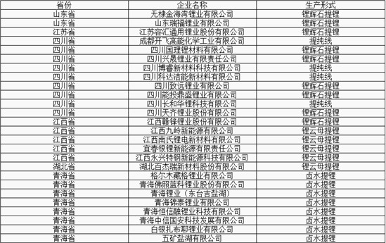 圖表:截止2020年底碳酸鋰生產企業