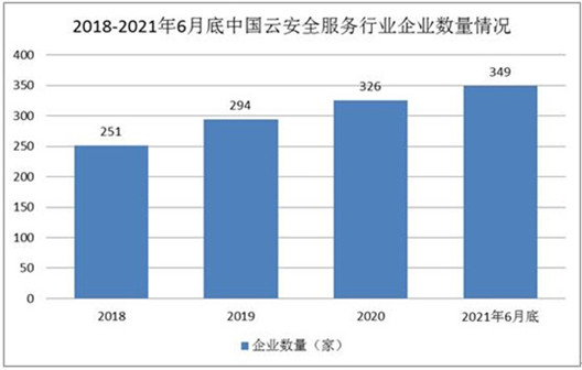 圖表:2018-2021年6月底中國云安全服務行業(yè)企業(yè)數(shù)量情況