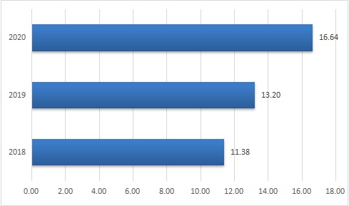 2015-2020年我國移動互聯(lián)網(wǎng)市場規(guī)模呈現(xiàn)上漲趨勢,2019年我國移動互聯(lián)網(wǎng)市場規(guī)模達到13.20萬億元,同比增長13.20%,2020年我國移動互聯(lián)網(wǎng)的市場規(guī)模達到16.64萬億元。