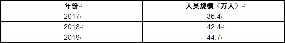 2017年,中國藝術品行業人員規模為36.4萬人,到2019年底,達到44.7萬人。