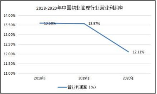 營業利潤率一定程度上反映了行業盈利能力,2018年中國物業管理行業營業利潤率約13.6%,2020年約12.11%。