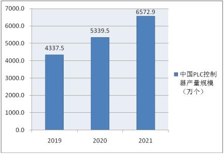 隨著技術的進步,基礎的PLC產品技術成熟度提升,模塊化水平提高,近幾年,我國PLC行業產量快速增長,產量從2019年的4337.5萬個增長到了2021年的6572.9萬個。