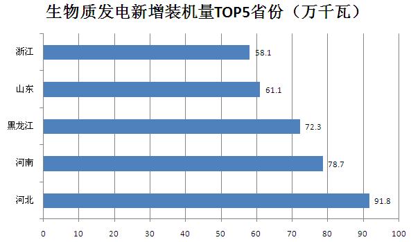 圖表:2021年生物質發電新增裝機量TOP5省份