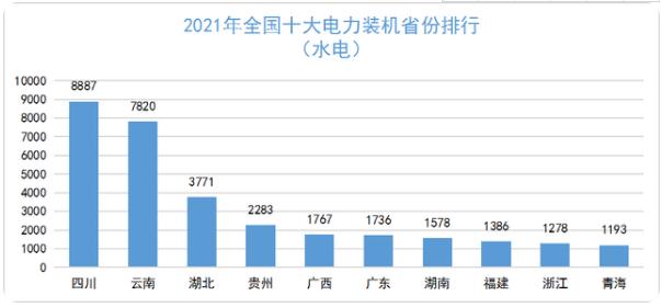 2021年,全國新增水電并網容量2349萬千瓦,為“十三五”以來年投產最多。截至2021年12月底,全國水電裝機容量達39092萬千瓦(含抽水蓄能3639萬千瓦),同比增長5.6%,占全部裝機容量的16.4%。