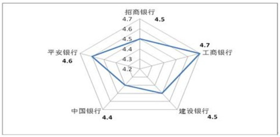 可以看到,消費(fèi)者偏好的品牌中,工商銀行的品牌忠誠(chéng)度指數(shù)最高,達(dá)到4.7。