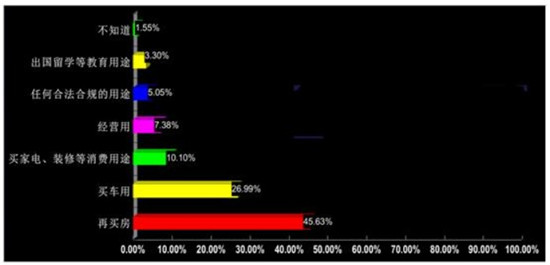 二次買房、購(gòu)車是認(rèn)知度最高的兩種用途,分別超過45%、25%,經(jīng)營(yíng)、出國(guó)留學(xué)等其他用途的認(rèn)知度,普遍較低,均不足10%。