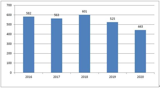 圖表:2016年-2020年全球活塞通用飛機交付情況(架)