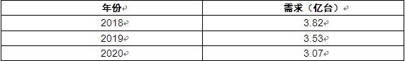 2018-2020年中國智能手機需求從3.82億臺下降到3.07億臺。