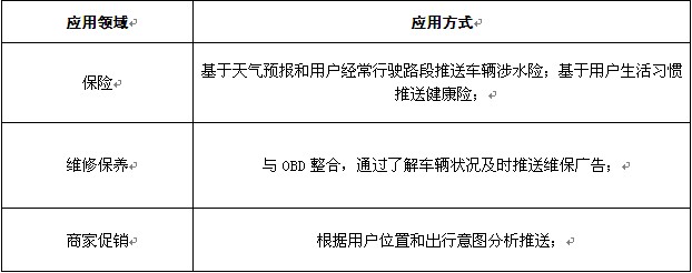 未來,智能后視鏡生產(chǎn)企業(yè)可以考慮和汽車保險公司合作,幫助保險公司實現(xiàn)更加精準(zhǔn)的營銷。智能后視鏡可以收集用戶的出行習(xí)慣等信息,從而適用于精準(zhǔn)廣告推送。保險公司現(xiàn)在主要通過電話來銷售車險,用戶黏性不高,智能后視鏡可以基于天氣預(yù)報和用戶經(jīng)常行駛的路段推送車輛涉水險,也能夠基于用戶的生活習(xí)慣等推送健康險。智能后視鏡與OBD整合,了解車輛狀況,是推送車輛維修和保養(yǎng)廣告的最佳載體。智能后視鏡還能夠根據(jù)用戶位置和出行意圖分析推送商家促銷的語音廣告,并導(dǎo)航。