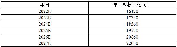 圖表:2022-2027年國內汽車后市場市場規模預測