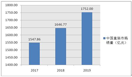 圖表:2017-2019年我國童裝市場銷量規模(單位:億元)