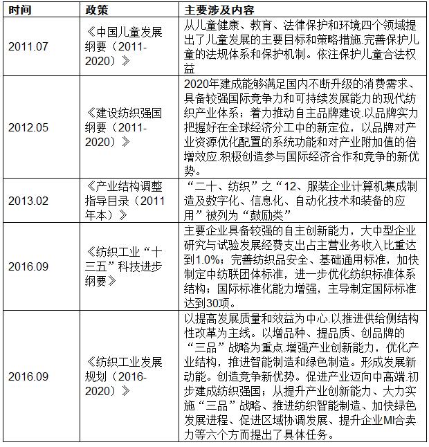 服裝行業作為紡織工業的重要組成部分,在繁榮經濟、吸收就業、滿足社會消費需求等方面發揮著重要作用。在政策法規方面,我國先后頒布了一系列法律法規與政策文件,以規范和推動服裝行業的發展,給予優勢企業更好的發展環境,推動自主品牌的建設和推廣,加快我國服裝行業的結構調整和產業升級。