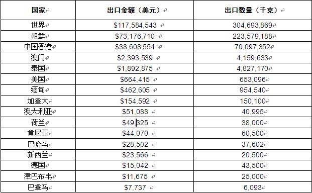 圖表:2019年我國面粉出口分國家統(tǒng)計(jì)