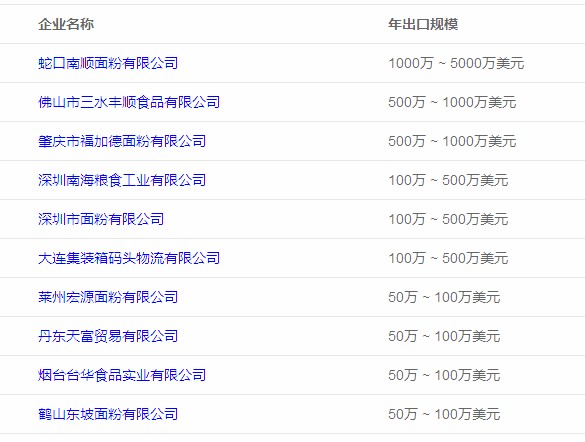 圖表:2019年中國面粉出口企業(yè)出口額