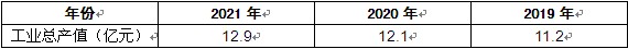 2019年中國清酒行業(yè)工業(yè)總產(chǎn)值為11.2億元,2020年工業(yè)總產(chǎn)值為12.1億元,2021年工業(yè)總產(chǎn)值為12.9億元。