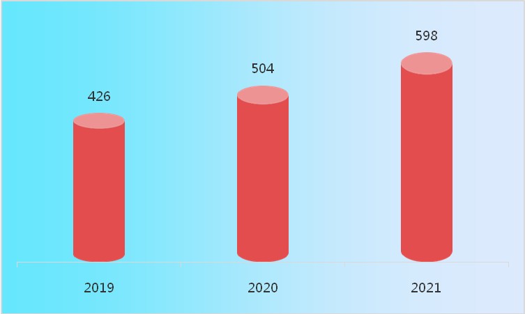 圖表:2019-2021年美白化妝品市場規模(億元)