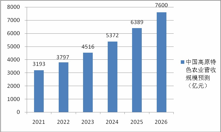 根據相關數據,我國高原特色農業主要企業的營收規模在2021年預計約為3193億元,到2026年,銷售收入規模能達到約7600億元,高原特色農業年復合增長率約為18.9%。