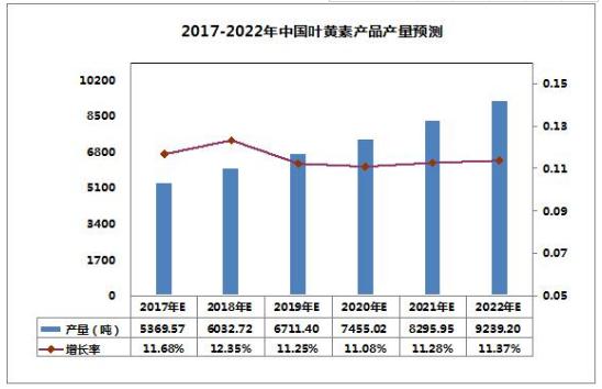 葉黃素屬于植物提取物的細分,在我國植物提取物行業尚處于初級發展階段。隨著我國經濟發展及民眾健康生活觀念的增強,葉黃素開始逐漸受到市場關注及重視,行業發展呈現穩定上升的趨勢。2015年我國葉黃素行業市場規模約2.59億元,2016年約2.8億元,2017年我國葉黃素行業市場規模將達到約3.07億元,2018年約3.35億元,2019年約3.66億元,2020年約3.99億元,2021年約4.35億元,2022年約4.75億元。