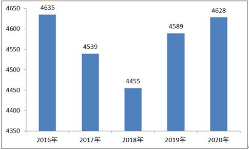 圖表:2016-2020年全球嬰幼兒配方奶粉產量(單位:千噸)
