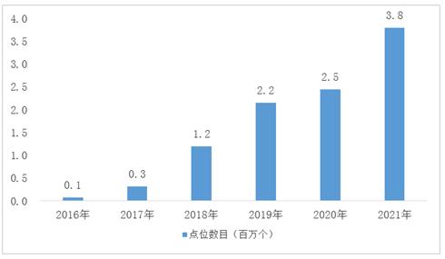 圖表:2016-2021年我國共享充電寶點位數(shù)目