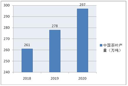 茶葉屬于天然健康的飲品,在中國具有悠久的飲茶歷史。中國是茶葉最大的生產國,茶葉產量是世界第一。2016年以來,中國茶葉產量呈穩定增長趨勢,數據顯示,我國茶葉產量從2016年的231.33萬噸增長至2020年的297萬噸,2020年較2019年增加19.28萬噸,同比增長6.94%。