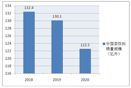 圖表:2018-2020年我國茶飲料銷量規模分析(單位:億升)