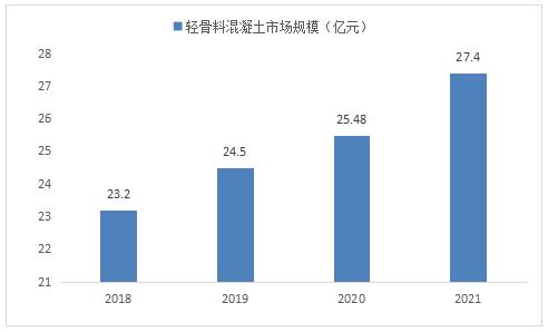 圖表:2018-2021年中國輕骨料混凝土行業(yè)市場規(guī)模