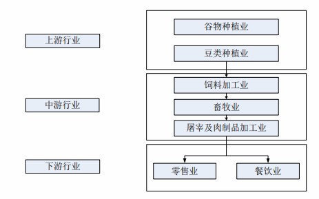 肉牛養殖行業的上游行業的上游為谷物、豆類種植業,下游為餐飲業及零售業。