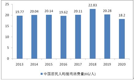 圖表:2013-2021年我國居民人均豬肉消費量