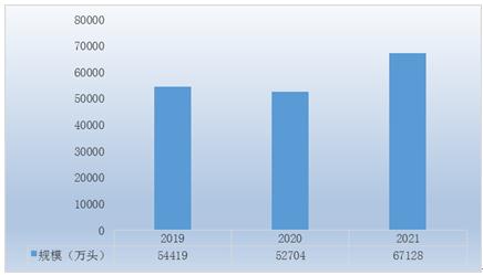 圖表:2019-2021年全國生豬出欄量