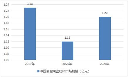 2019年中國真空吸盤掛鉤市場規模為1.23億元,2020年受疫情影響市場規模為1.12億元,2021年市場規?;厣?.2億元。