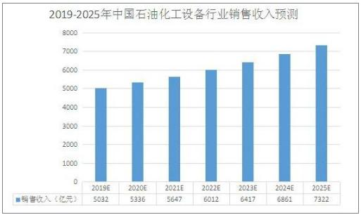 圖表:2022-2025年中國石油化工設備行業銷售收入預測