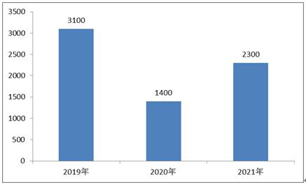 圖表:2019-2021年中國熱泵進(jìn)口量(單位:臺)