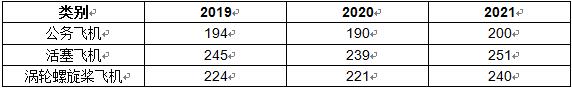 圖表:2019-2021年美國通用飛機(jī)交付量(架)