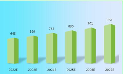 圖表:2022-2027年美白化妝品產(chǎn)品市場(chǎng)規(guī)模預(yù)測(cè)(億元)