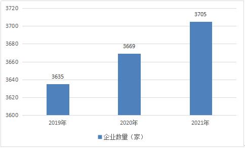圖表:2019-2021年相關(guān)企業(yè)數(shù)量(單位:家)