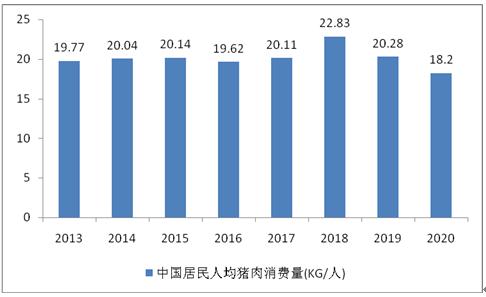 圖表:2013-2021年我國居民人均豬肉消費量