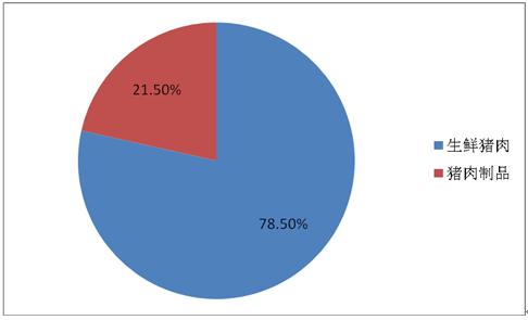 豬肉為世界各地最常見的消費肉品。目前豬肉市場中主要為生鮮豬肉,占整體的78.5%。豬肉制品占比較少,僅有21.5%。