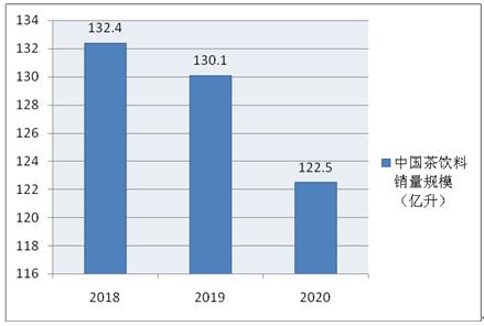 圖表:2018-2020年我國茶飲料銷量規模分析(單位:億升)