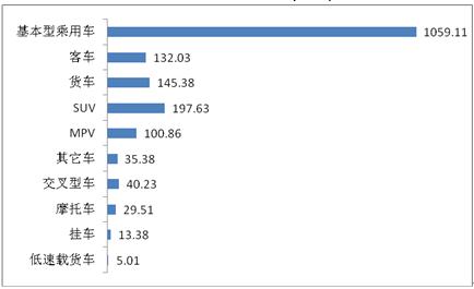 圖表:2021年二手車各細分車型交易情況(萬輛)