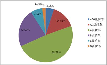圖表:2021年中國二手車各級別轎車銷量占比情況