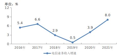 圖表:2016-2021年電信業務收入增長情況