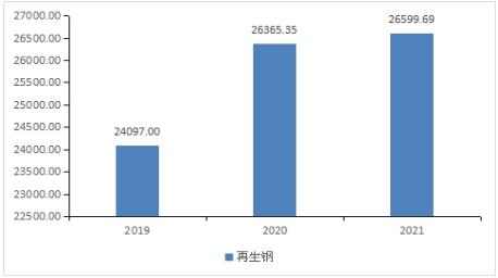圖表:2019-2021年再生鋼產量(單位:萬噸)