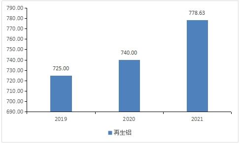 圖表:2019-2021年再生鋁產量(單位:萬噸)