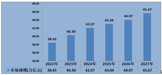 圖表:2022-2027年基建行業(yè)市場(chǎng)規(guī)模預(yù)測(cè)