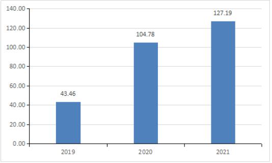 雖然產量增長較為緩慢,但是受到多方因素影響,各類成本上升,冷鏈集裝箱市場的銷售價格也有所上升,從而提高了冷鏈集裝箱行業的市場規模,也帶動看租賃市場規模的提升。在2021年,冷鏈集裝箱租賃的市場規模約為127.19億元,相較于2020年的104.78,提高了21.39%。