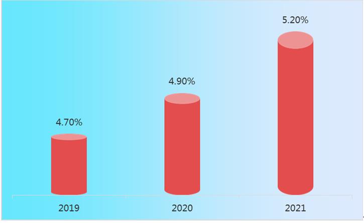 2019-2021年全釩液流電池行業產值利稅率由7.2%上升到8.1%。